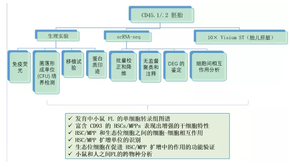 免疫熒光,菌落形成單位(CFU)培養試驗,移植試驗,蛋白免疫印跡(WB),scRNA-seq,10× Visium ST,小鼠和人之間FL的跨物種分析