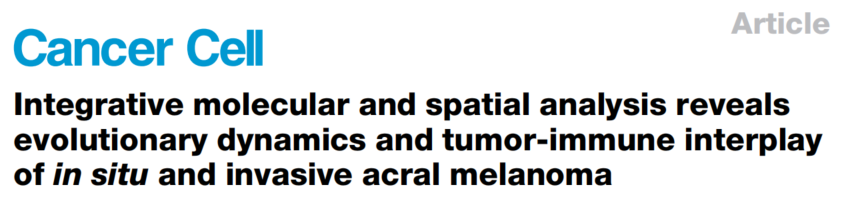 中文題目:整合分子和空間分析揭示原位和侵襲性肢端黑色素瘤的進化動態和腫瘤免疫相互作用