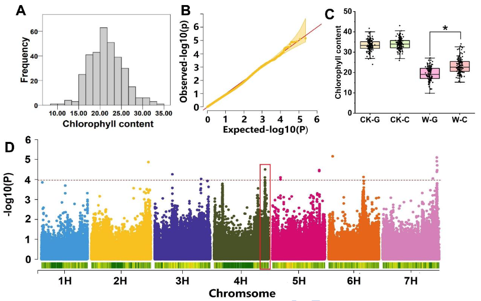 1.全基因組關(guān)聯(lián)分析(GWAS)鎖定4H染色體上的關(guān)鍵位點(diǎn)