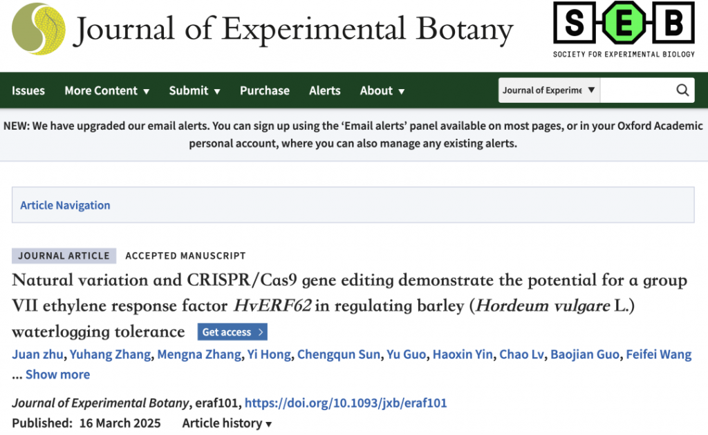 揚(yáng)州大學(xué)Rugen Xu團(tuán)隊(duì)在《Journal of Experimental Botany》雜志發(fā)表題為“Natural variation and CRISPR/Cas9 gene editing demonstrate the potential for a group VII ethylene response factor HvERF62 in regulating barley (Hordeum vulgare L.) waterlogging tolerance”的論文,揭示了大麥VII類乙烯反應(yīng)因子?HvERF62?通過(guò)調(diào)控氣孔形成、活性氧穩(wěn)態(tài)和碳水化合物積累,從而提高大麥耐漬澇能力。