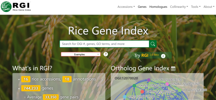 ☆?水稻基因索引數(shù)據(jù)庫RGI:在這個數(shù)據(jù)庫里,亞洲稻的每一個基因都能輕松找到同源或相近的基因,以及追蹤其演變歷史。