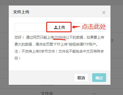 網頁只能上傳 200MB 以下的數據,上傳更大的數據請點擊”FTP 上傳”。注:不支持上傳 0 字節文件!文件名不能包含中文及特殊字符!