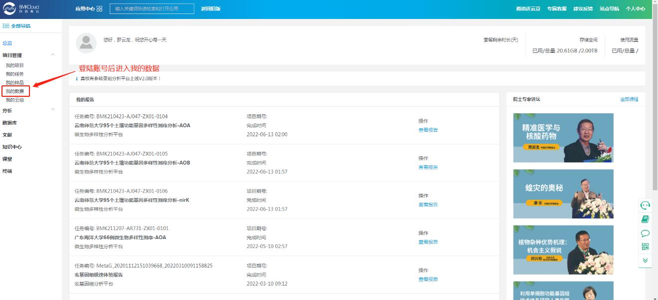 1、登陸賬號后,在主頁面查看項目管理,進入“我的數據”