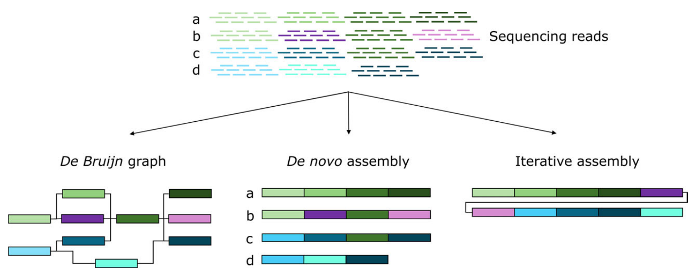 泛基因組主要有3種構(gòu)建方法:Map to pan,Iterative assembly和De novo assembly。從頭組裝(De novo assembly):是構(gòu)建泛基因組或者參考基因組最經(jīng)典的方法,分別對(duì)多個(gè)個(gè)體分別進(jìn)行從頭組裝并且注釋,然后將所得的每個(gè)個(gè)體的組裝好的序列與參考序列基因組進(jìn)行互相比對(duì),找出比對(duì)不上的區(qū)域或者基因,這些個(gè)體獨(dú)特的基因就是非核心基因。
