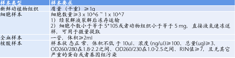 答:LncRNA測序產品可以對動植物、全血、細胞等組織或者核酸樣本進行測序,分析要求需要有對應物種的參考基因組,具體的送樣指導,請參考如下內容: