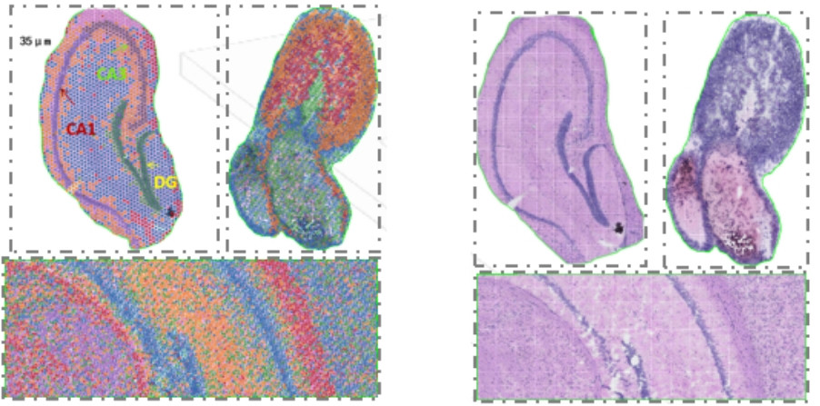 百創(chuàng)S1000空間轉錄芯片保留原片HE染色,結合高分辨率的spots聚類,能得到更為精準的結果。
