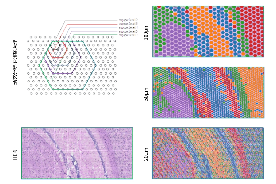 百創(chuàng)S1000空間轉錄芯片結果支持從100μm-4.8μm動態(tài)調整。