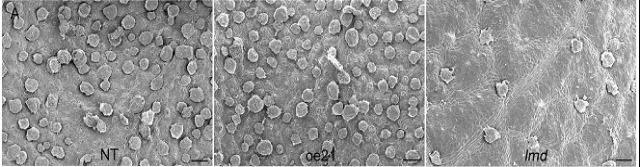 許多LMM壞死病變的形成都與ROS相關。為了確定lmd的程序性細胞死亡是否伴隨著活性氧的產生,作者進行了DAB染色和DCFH-DA染色,結果顯示lmd體內積累了較多的過氧化物(圖10)。