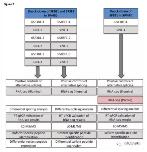 為了驗證能通過splicify得到的isoform,同時增加新的轉錄本,Iso-seq被用于在SW480細胞中SF3B1的下調和siNT對照(如圖2所示)的檢測中。