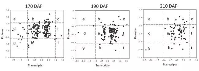 J Wu[1] 等,利用轉(zhuǎn)錄組與蛋白組的聯(lián)合分析對(duì)正常成熟甜橙和其晚熟突變體進(jìn)行了甜橙果實(shí)成熟機(jī)制的探究。通過(guò)RNA-seq在突變體與野生型中共得到628個(gè)差異表達(dá)基因;利用iTRAQ共鑒定到130個(gè)差異蛋白;通過(guò)對(duì)兩個(gè)水平結(jié)果的聯(lián)合分析獲得多個(gè)參與甜橙果實(shí)成熟的代謝通路,比如激素途徑、細(xì)胞壁合成以及糖代謝通路,同時(shí)轉(zhuǎn)錄組與蛋白組差異表達(dá)模式的不一致揭示部分蛋白參與轉(zhuǎn)后調(diào)控,為揭示甜橙成熟機(jī)制奠定基礎(chǔ)。