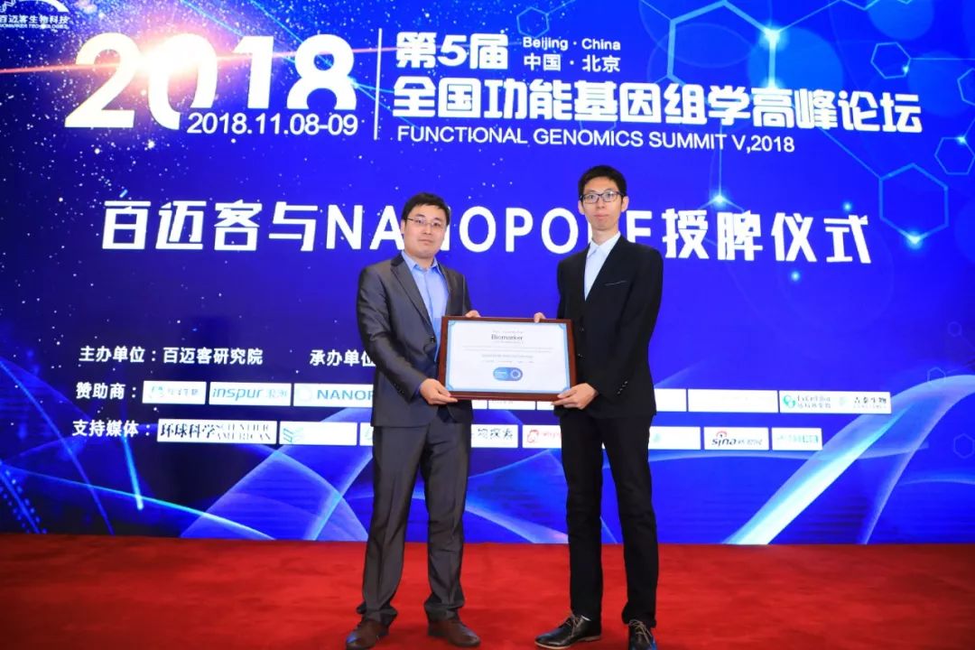 Nanopore官方人員預祝第五屆全國功能基因組學峰會圓滿成功,并確認百邁客已拿到官方的DNA、RNA測序資質,這也是中國大陸拿到Nanopore RNA測序資質的公司。同時百邁客也與Nanopore官方代表舉行授牌儀式。