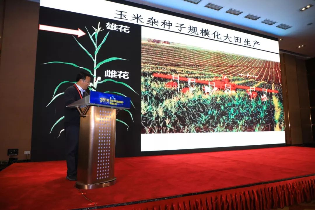 鄧興旺院士對應用基因測序對現代育種技術的重要影響做了講解。介紹了新一代水稻和小麥雜交種質生產技術的發展,報告中提到利用了一種新型的編碼GMS氧化還原酶的核基因OsNP1成功構建了一種新型的水稻雄性不育體系。同時利用了基因組研究技術成功克隆了小麥雄性不育系Ms1。