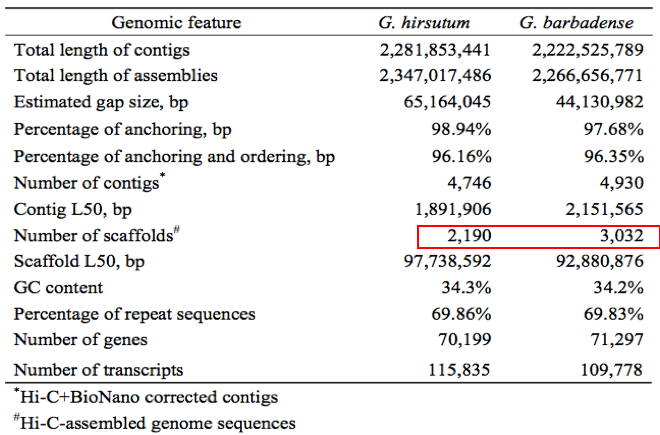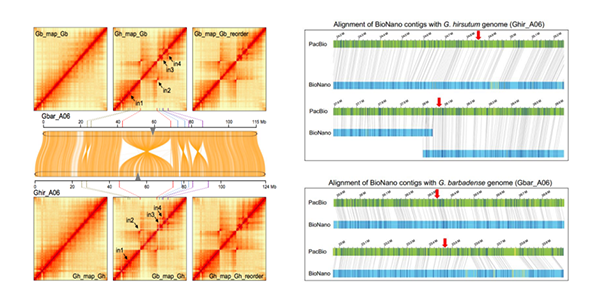 ?2018年12月4日,華中農業大學作物遺傳改良國家重點實驗室張獻龍課題組首次通過三代測序(PacBio)+光學圖譜(BioNano)+Hi-C技術完成了異源四倍體陸地棉(Gossypium hirsutum)和海島棉(Gossypium barbadense)基因組組裝。該研究成果刊登于Nature Genetics,文中利用北京百邁客生物科技有限公司的三代PacBio測序組裝及Hi-C染色體掛載技術,組裝獲得了高質量栽培種異源多倍體棉基因組。>>下載文獻全文
