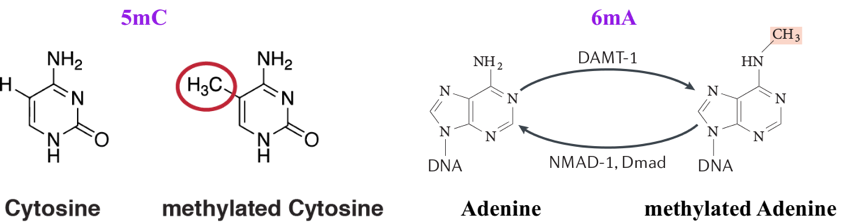 DNA甲基化是表觀遺傳領域中非常重要的一個研究方向,真核生物中最常見的DNA修飾是5mC(CG/CHG/CHH),而原核生物中6mA是最普遍的DNA修飾。然而,近幾年來的報道發現DNA 6mA修飾在真核生物基因組中廣泛存在。2018年7月和11月發表的文章都發現了人類基因組中豐富的6mA修飾。值得關注的是,這兩篇人類基因組中6mA的功能研究卻發現了兩種不同的聲音,其中Yan et al.?發現6mA水平在癌癥中有明顯下調,然而Jeremy N. Rich et al.卻暗示了膠質瘤中甲基化水平是顯著提升。因此,6mA在腫瘤甚至其他復雜疾病中的調控機制到底如何還需廣大研究者們的深入研究~