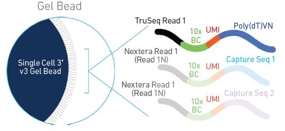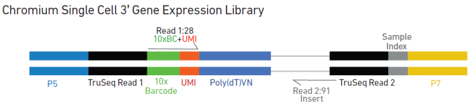 ChromiumTM Single Cell 3′ Solution是基于10 X Genomics平臺,能夠一次性分離、并標記500–10000個單細胞,并能在單細胞水平進行檢測的技術,其通過微流控系統,將單細胞或長片段DNA分子快速分配到油包水的微反應體系中,每個微反應體系中的單DNA分子會獲得唯一的特異性分子標簽,制備生成的測序文庫可以在illumina平臺進行測序,并由10x Genomics提供數據分析及可視化軟件,測序實驗及分析流程可以和illumina系統無縫銜接。該平臺廣泛應用于3’單細胞轉錄組測序、基因組組裝應用、免疫組庫測序、ATAC-seq、人全基因組及全外顯子組測序。