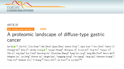 胃癌(GC)在全球腫瘤死亡原因中排名第三,我國是胃癌發病和死亡的重災區。Lauren分型從形態學上將GC分為三種類型:彌散型,腸型和混合型,彌漫型胃癌(DGC)占GC的約30%,預后最差,且缺少有效的靶向治療手段。盡管國際上發表過基于基因組和轉錄組的胃癌分子分型,但均沒有與臨床預后實現有效的關聯性。本文對胃癌組織及其附近組織進行蛋白質組學研究,是DGC的蛋白質組學分析,研究成果發表在Nature Communications雜志上。