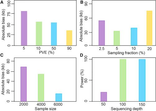 2.?取樣率與QTG位置偏差大小:當取樣率為20%時,位置偏差略大;較大的取樣比例會增加群體大小,但有效重組事件數量也會增加
