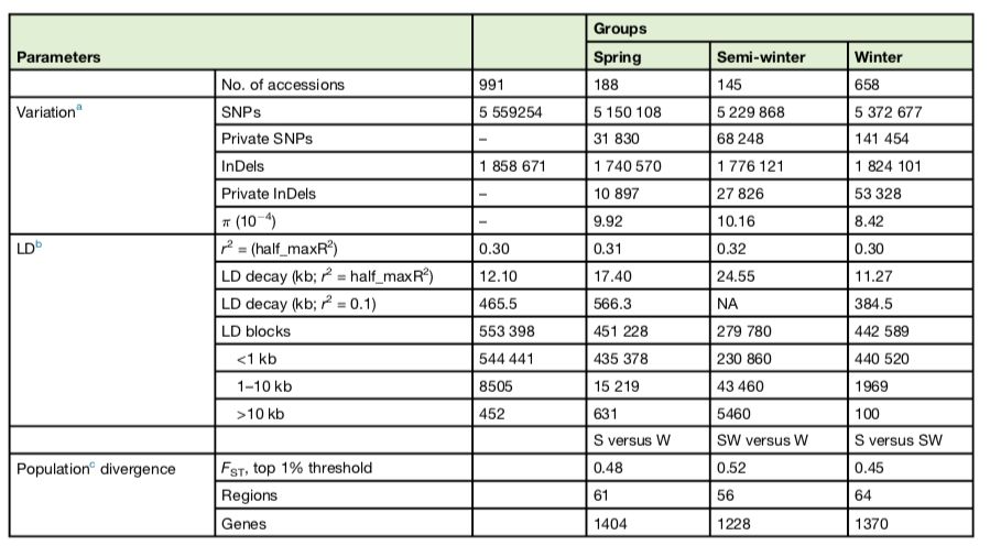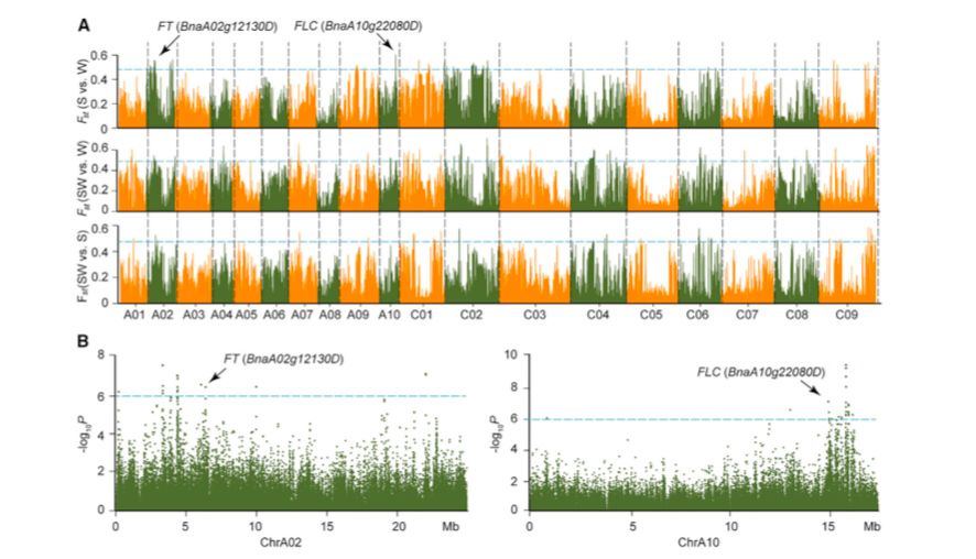 雖然已經報道了油菜的冬季、半冬和春季生態型的遺傳變異,但不同的生態類型在甘藍型油菜中的差異的關鍵等位基因變異尚不完全清楚。