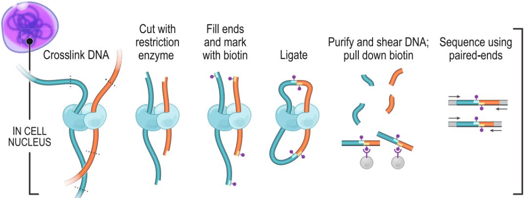 ChIA-PET:對(duì)感興趣的蛋白質(zhì)結(jié)合位點(diǎn)之間的遠(yuǎn)程互作進(jìn)行全基因組分析。