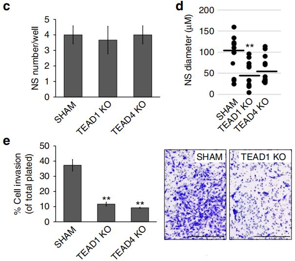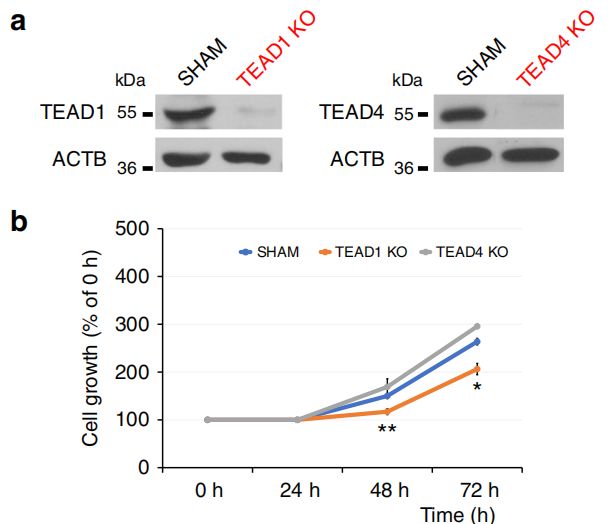 CRISPR-Cas9基因敲除與過表達(TEAD1、TEAD4、EGFR等);RNA-seq;體外–細胞增殖與遷移實驗;體內–異種移植實驗;染色質免疫沉淀實驗等。