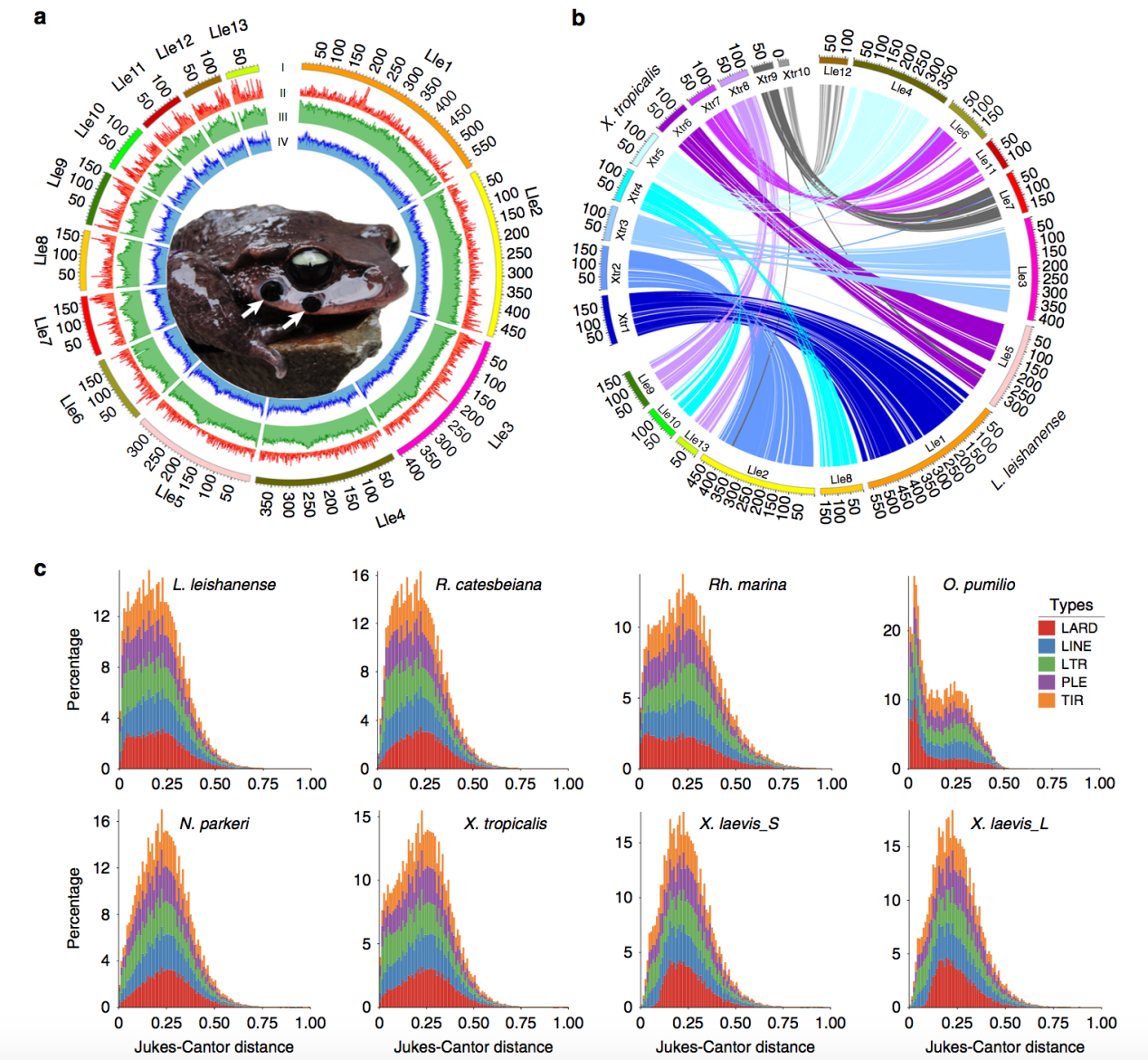 2019年12月5日,國(guó)際知名期刊Nature Communications (《自然·通訊》)在線發(fā)表了由華中師范大學(xué)與北京百邁客生物科技有限公司共同合作文章“Genomic and transcriptomic insights into molecular basis of sexually dimorphic nuptial spines in Leptobrachium leishanense”。華中師范大學(xué)生科院吳華教授為本文通訊作者,華中師范大學(xué)生科院李軍博士為論文的第一作者,百邁客生物科技作為第二單位共同參與研究。本研究借助二代、三代PacBio和HiC技術(shù)組裝了我國(guó)特有物種雷山髭蟾(Leptobrachium Leishanense)高質(zhì)量基因組,通過(guò)比較基因組學(xué)分析及雌雄個(gè)體不同發(fā)育時(shí)期的有參轉(zhuǎn)錄組分析鑒定了一系列與角質(zhì)刺性二態(tài)發(fā)育相關(guān)的生物學(xué)通路和關(guān)鍵基因。研究成果首次較全面地解析了兩棲動(dòng)物性二態(tài)形成相關(guān)的重要生物學(xué)通路以及關(guān)鍵基因,彌補(bǔ)了相關(guān)研究的不足。該成果不僅為兩棲動(dòng)物基因組數(shù)據(jù)庫(kù)提供了高質(zhì)量的參考基因組,而且對(duì)于深入理解脊椎動(dòng)物性二態(tài)形成及調(diào)控的分子機(jī)制具有重要意義。