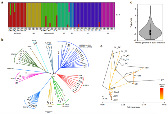 群體進化研究:群體材料選擇(重測序,~22.1x),77個小墊柳(14個主要棲息地);