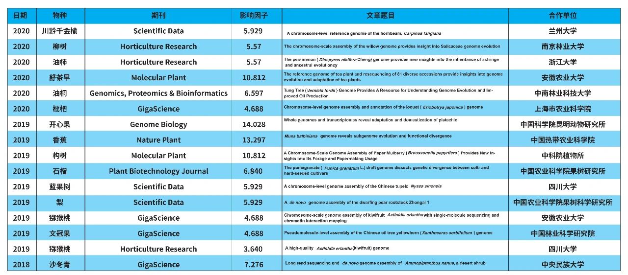 林木基因組雜合度高,此外大基因組的針葉樹和一些多倍體的樹種難以獲得高質(zhì)量的基因組序列,北京百邁客生物科技有限公司擁有豐富的基因組組裝經(jīng)驗,尤其對高雜合,大基因組及多倍體植物基因組研究中獨具優(yōu)勢,由北京百邁客新推出的ONT+PB CCS的雙平臺組裝策略贏得了眾多老師的好評,針對林木基因組組裝更具優(yōu)勢,目前公司僅林木類基因組合作文章發(fā)表20余篇,累計影響因子達116+,而正是這些高質(zhì)量林木基因組的破譯,將打破林木基因組育種中的瓶頸,為育種研究奠定了深厚的基礎(chǔ)。