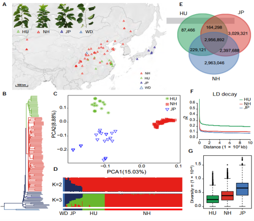 群體進化研究:群體材料選擇(重測序:~15.6X):134份桑樹種質(zhì)(132份栽培種,來自中國和日本;2份野生種,來自中國陜西);