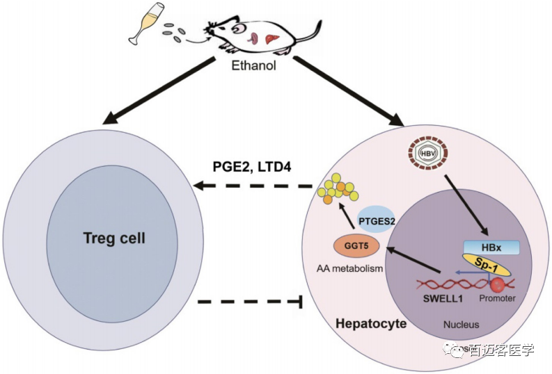 案例五:慢性酒精攝入和HBV通過HBx-SWELL1- 花生四烯酸信號傳導誘導脂質代謝異常并激活HBV-Tg小鼠Treg細胞