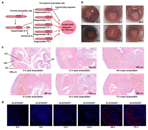 進一步利用10xGenomics單細胞轉錄組測序深度解析蚯蚓再生機制,蚯蚓再生早期72小時后損傷愈合部位細胞的高比例組分是干細胞,且多能干細胞在蚯蚓再生早期過程中具有重要作用。此項研究提供了一些蚯蚓再生的候選分子細胞學機制。