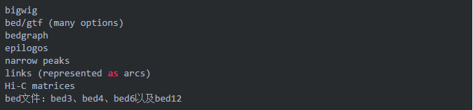 pyGenomeTracks旨在產生高度可定制的高質量基因組瀏覽器軌道。目前,可以繪制: