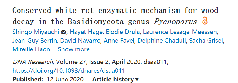 本文通過比較基因組,轉錄組和蛋白組等多組學方法對擔子菌門下的密孔菌屬的真菌進行研究,發現它們在木材降解反應中存在著一些保守的酶學反應特征,包括產過氧化氫酶和耗過氧化氫酶協同作用,纖維二糖脫氫酶和AA9溶解性多糖單氧酶協同作用。