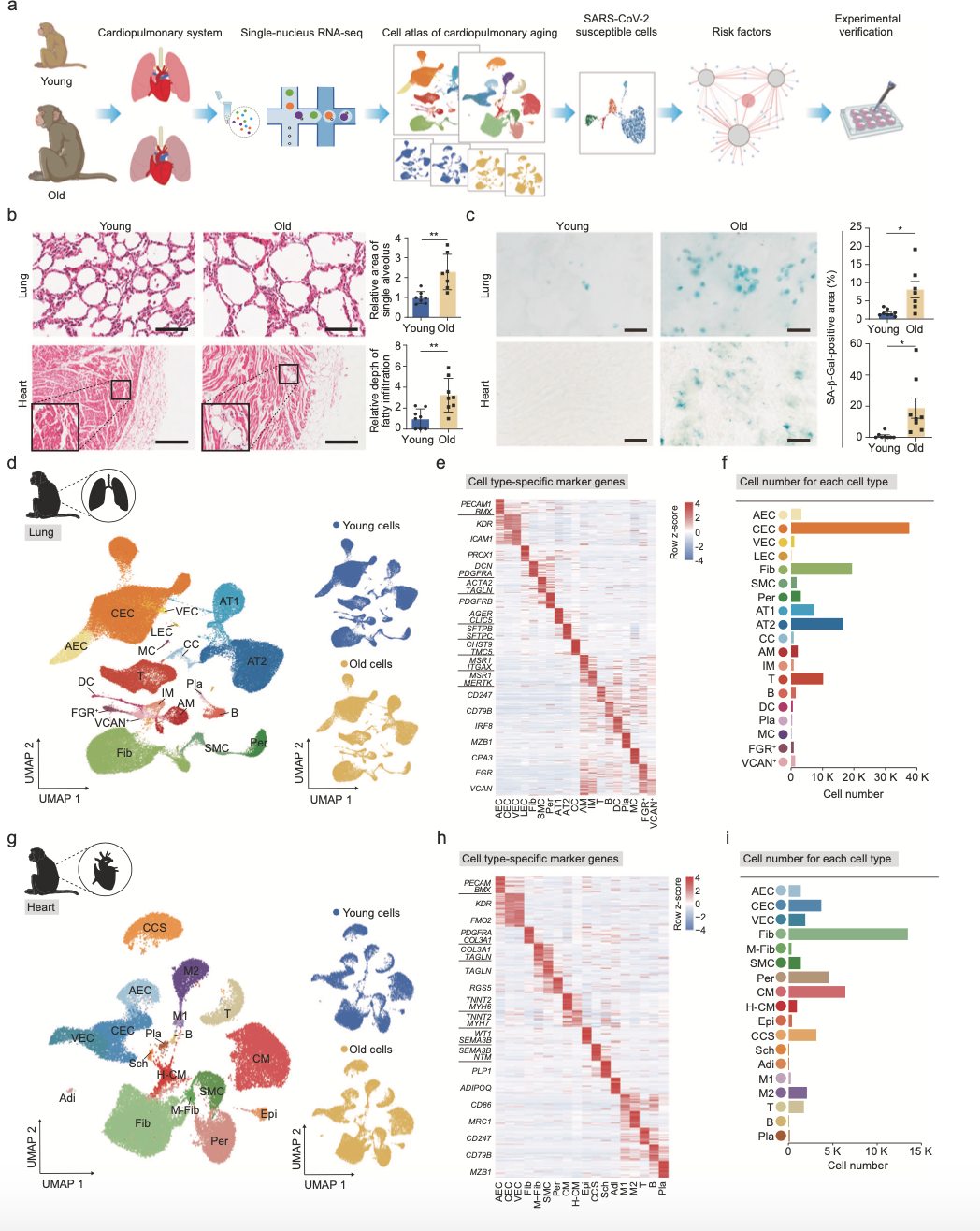 作者描繪了年老的靈長類心肺系統的轉錄圖譜,并提供了關于年齡相關的SARS-CoV-2易感性的重要見解,這表示神經保護策略可能降低老年人中COVID-19的嚴重程度。