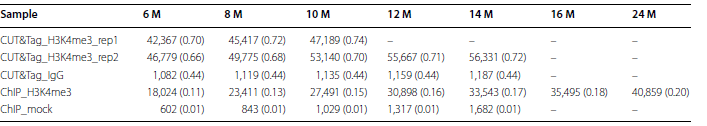 表1 相同測序深度下CUT&Tag及ChIP產生的 peaks數及FRiP值