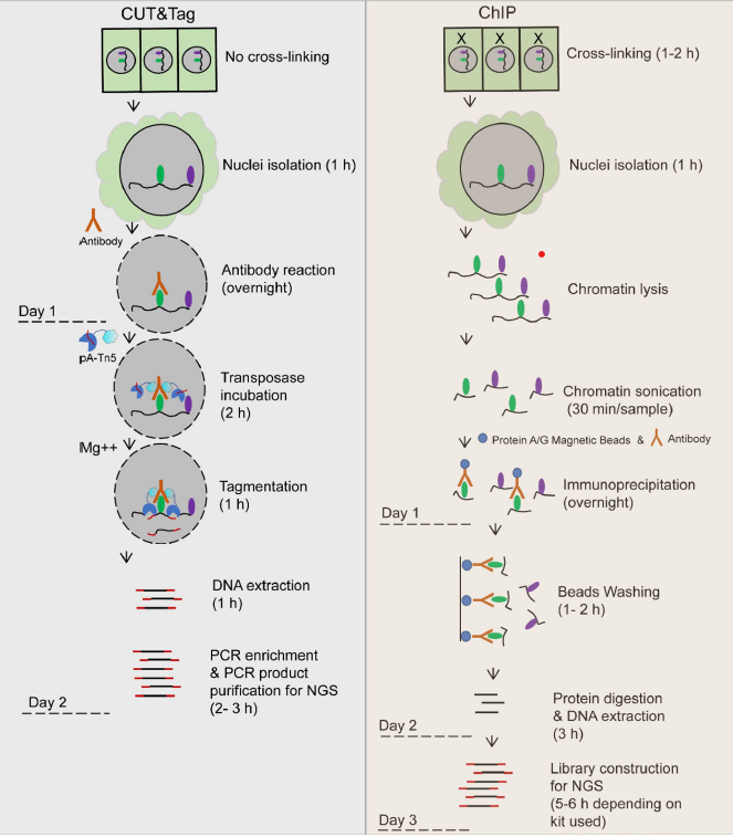 圖2 CUT&Tag與ChIP-Seq實驗流程對比[2]