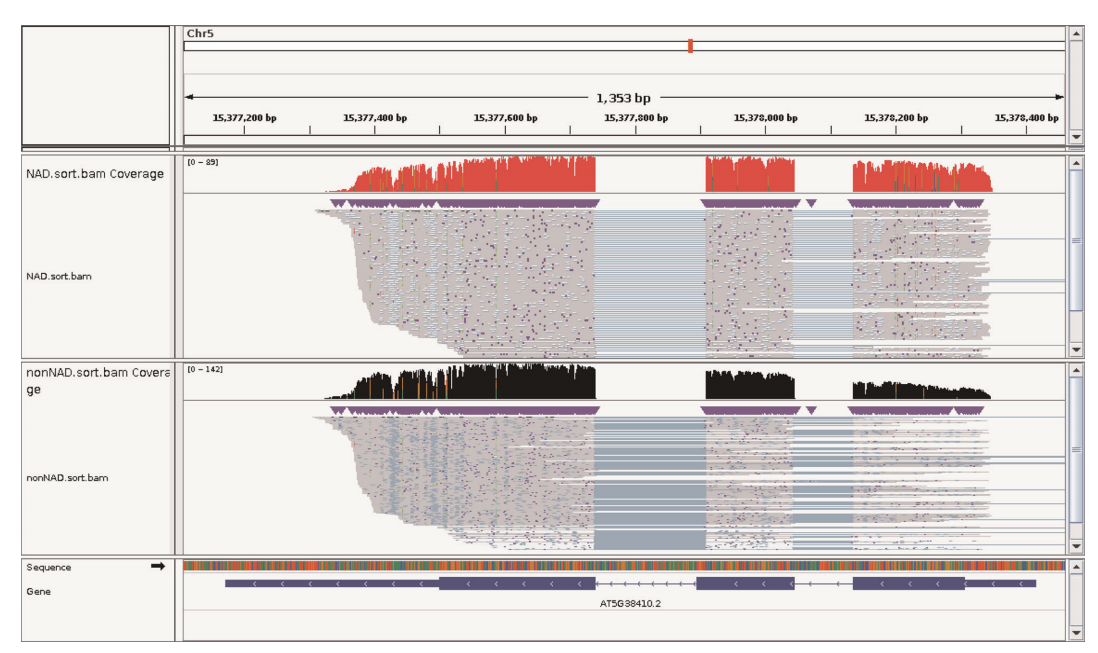 圖3 NAD-RNA和noncapped-RNA reads可視化圖