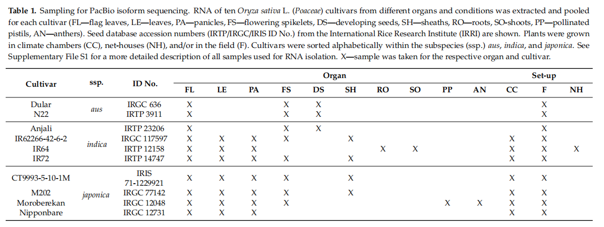 文章題目:Utilizing PacBio Iso-Seq for Novel Transcript and Gene Discovery of Abiotic Stress Responses in Oryza sativa L.