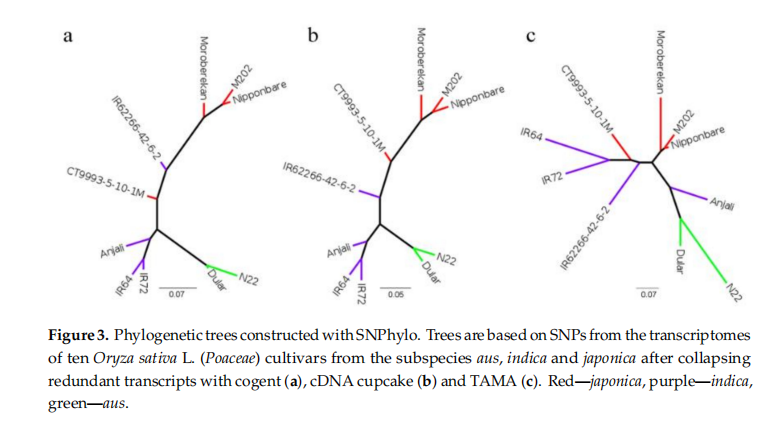 解決這一問題的一個顯而易見的辦法是對所需的基因組進行測序、組裝和注釋。但是,這種方法比較昂貴和耗時。在這篇文章里,我們探索了一種更有針對性的RNA-Seq序列方法來測序和重建了三個不同亞種的水稻品種的部分轉錄本作為參考,Pacific Bioscience(PacBio)屬于提供高通量全長轉錄本序列的新一代測序方法。該方法已成功應用于對現有植物轉錄本及注釋的探索和擴展,如高粱、小麥、甘蔗、野生棉花、不同的穗型草、苜蓿等。