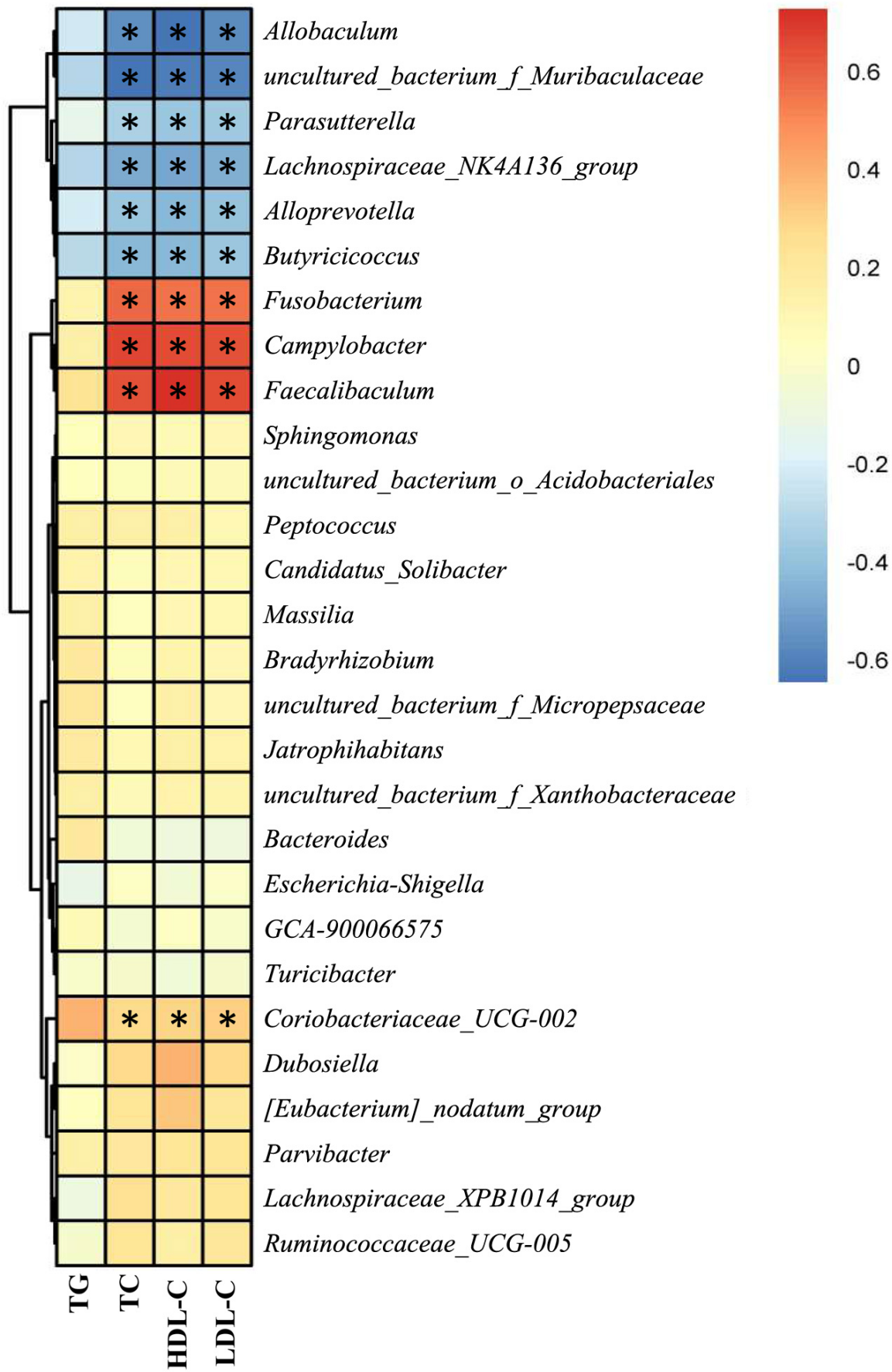 圖8 腸道細(xì)菌相對(duì)豐度與血脂水平的相關(guān)性