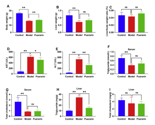 Gong MJ, Zhu CY, Zou ZJ, et al. Therapeutic potential of puerarin against methionine-choline-deficient diet-induced non-alcoholic steatohepatitis determined by combination of 1H NMR spectroscopy-based metabonomics and 16S rRNA gene sequencing. J Pharm Biomed Anal. 2021 Apr 15;197:113964. doi: 10.1016/j.jpba.2021.113964.