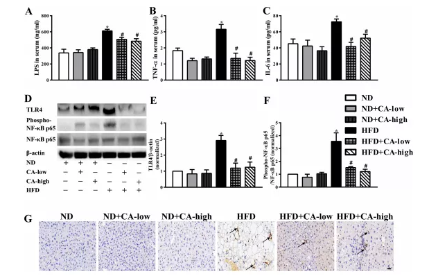 4.補充CA可減輕高脂喂養小鼠的內毒素血癥和隨后的促炎反應