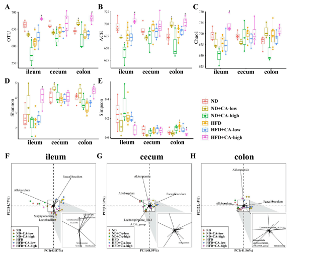 5.補充CA可減少高脂飼料喂養小鼠的腸道菌群失調