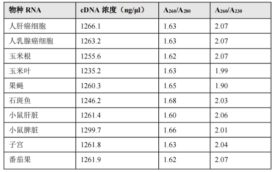 表5:分別以不同物種的總 RNA?為模板,逆轉(zhuǎn)錄得到cDNA。