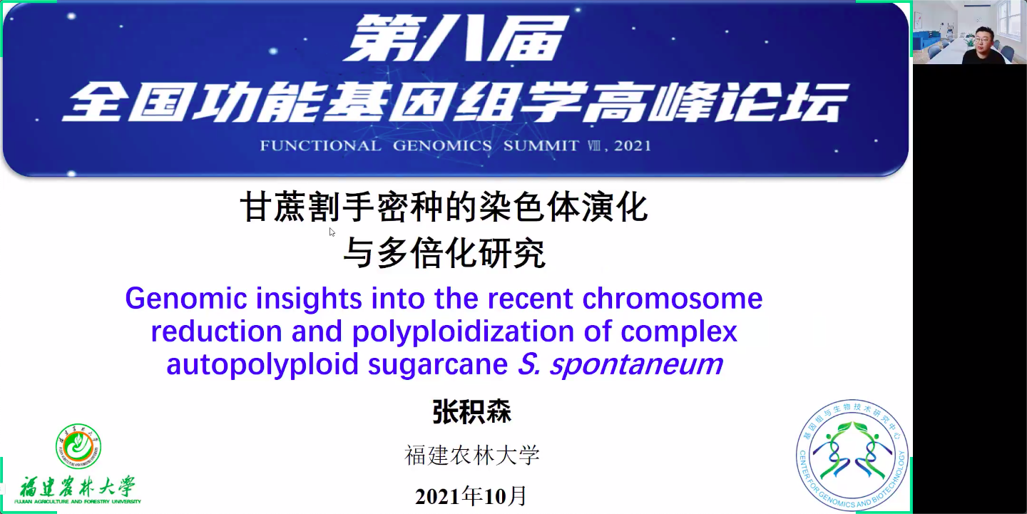 福建農(nóng)林大學(xué)張積森教授介紹了甘蔗的經(jīng)濟價值及甘蔗屬的分類,并對割手密品種(Np-X)的基因組組裝進行了詳細解說,對甘蔗割手密種在禾本科的演化歷史進行了進一步講解,提出了不同染色體基數(shù)割手密群體的演化假說。同時還指出此研究重點解析了相關(guān)性狀的重要候選基因,最后展示了已經(jīng)開發(fā)的甘蔗數(shù)據(jù)庫以及推進甘蔗全基因組選擇育種的幾點思考。