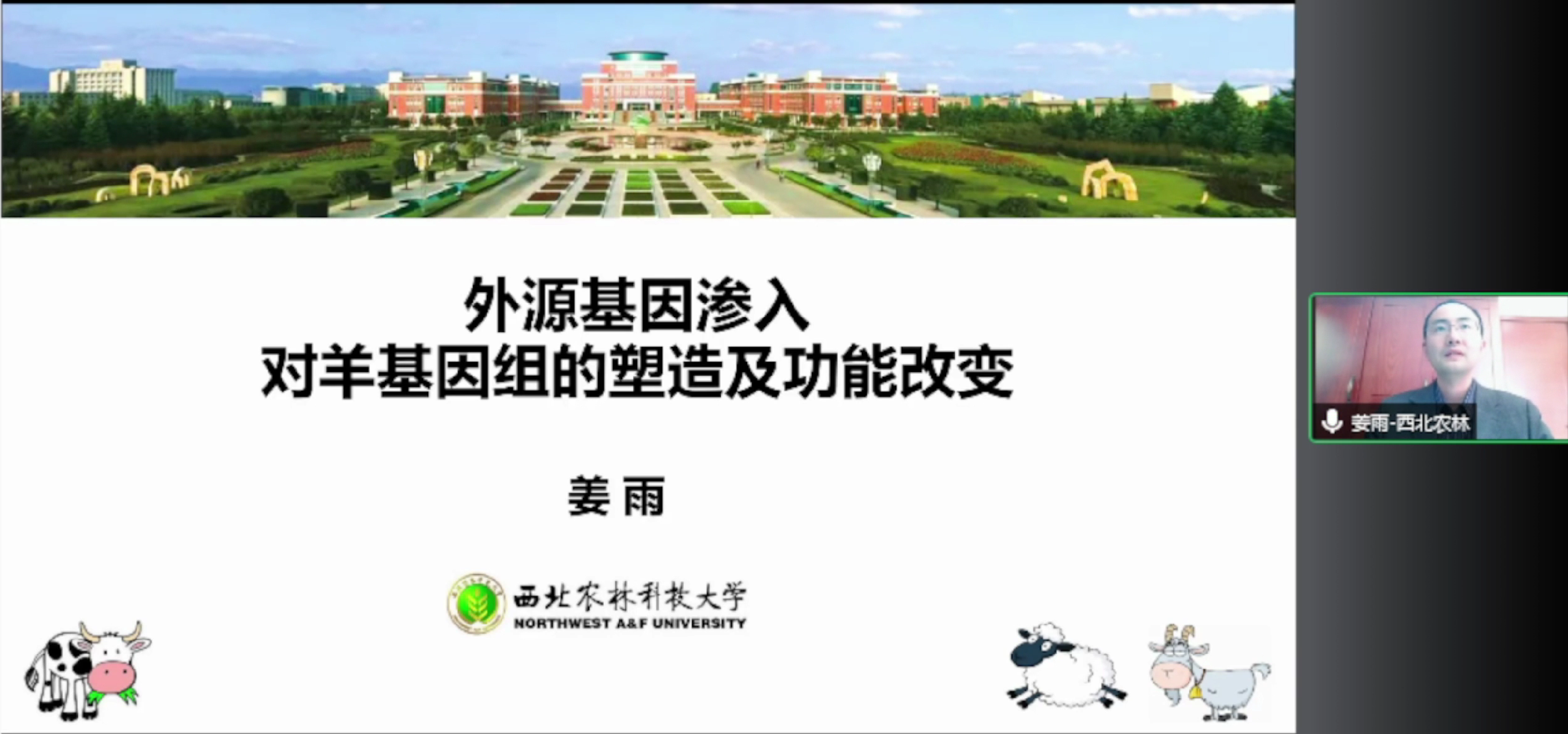 西北農(nóng)林科技大學(xué)姜雨教授報(bào)告詳述了基因滲入對(duì)羊基因組的塑造及其功能改變,其研究團(tuán)隊(duì)通過代表了170多個(gè)世界綿羊品種和七個(gè)綿羊?qū)僖吧锓N的全基因組序列分析,發(fā)現(xiàn)平均每只家養(yǎng)綿羊的基因組序列分別來自于伊朗的野生摩佛倫羊、東方盤羊和東亞盤羊的雜交滲入。說明起源于野生物種并滲入家養(yǎng)綿羊的獨(dú)特單倍型在表型多樣性和綿羊本地化適應(yīng)中起著重要作用。并發(fā)現(xiàn)綿羊的大角、小角、無(wú)角以及耳朵大小性狀相關(guān)基因。最后表示,從多個(gè)近緣野生物種、馴化祖先種的不同群體之間發(fā)生的滲入事件持續(xù)發(fā)生,遠(yuǎn)比想象的復(fù)雜,需要結(jié)合歷史和地理的遷徙知識(shí)討論。滲入單倍型在多種功能上發(fā)揮作用,其與已存在變異、新發(fā)突變通過快速組合,適應(yīng)新的環(huán)境。
