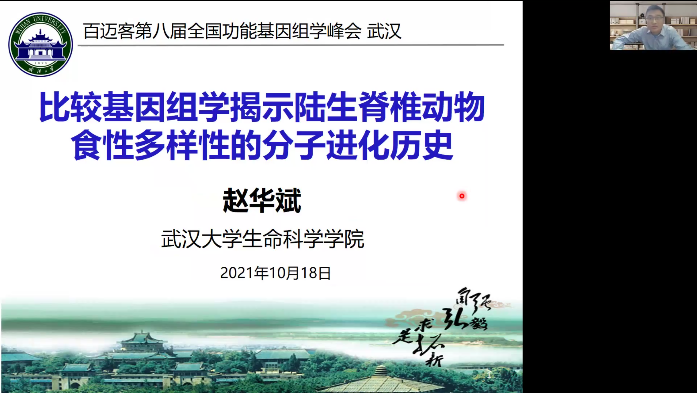 武漢大學(xué)趙華斌教授詳細(xì)講述了陸生脊椎動(dòng)物食性多樣性的分子進(jìn)化歷史,研究團(tuán)隊(duì)通過鳥類和哺乳動(dòng)物的比較基因組學(xué)研究,解析了不同食性動(dòng)物的基因組中留下是相應(yīng)的遺傳印記,發(fā)現(xiàn)味覺受體基因、消化酶基因、代謝酶基因和免疫基因等在動(dòng)物食性分化中發(fā)揮重要的推動(dòng)作用。揭示鳥類和哺乳動(dòng)物食性多樣性的趨同和趨異演化模式,最終解析脊椎動(dòng)物食性適應(yīng)的遺傳機(jī)理,進(jìn)一步將通過表觀研究解析食性的遺傳調(diào)控與分析機(jī)理。