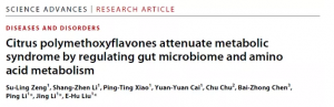 中文名稱:柑橘多甲氧基黃酮通過調節腸道菌群和氨基酸代謝減輕代謝綜合征