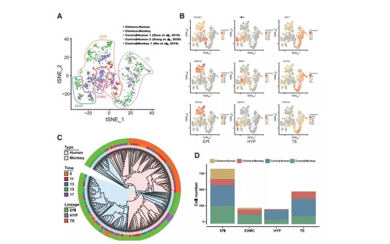 圖1 人猴嵌合胚胎的單細胞轉錄圖譜