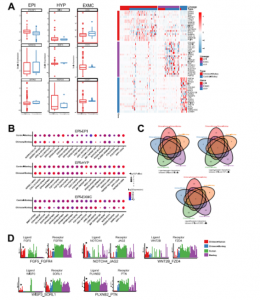 由于食蟹猴的細胞在人類細胞存在下表現出轉錄組的變化,接下來分析了嵌合胚胎中食蟹猴細胞的發育動態。首先確定了嵌合猴胚胎和對照猴胚胎之間的差異表達基因(DEG)。EPI細胞、HYP細胞和EXMCs細胞與對照胚胎相比,嵌合體細胞中分別有424、7和241個基因下調,5、2和13個基因上調(圖 2D和S3A)。GO和KEGG富集分析確定了在嵌合猴EPI細胞、HYP細胞和EXMCs細胞中上調和下調基因的信號通路,如Hippo和轉化生長因子β(TGF-β)信號通路分別在嵌合猴EPI細胞和EXMCs細胞中下調(圖 2E)。