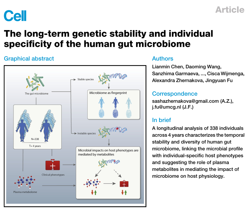 4月|Cell:人腸道微生物群的長期遺傳穩定性和個體特異性